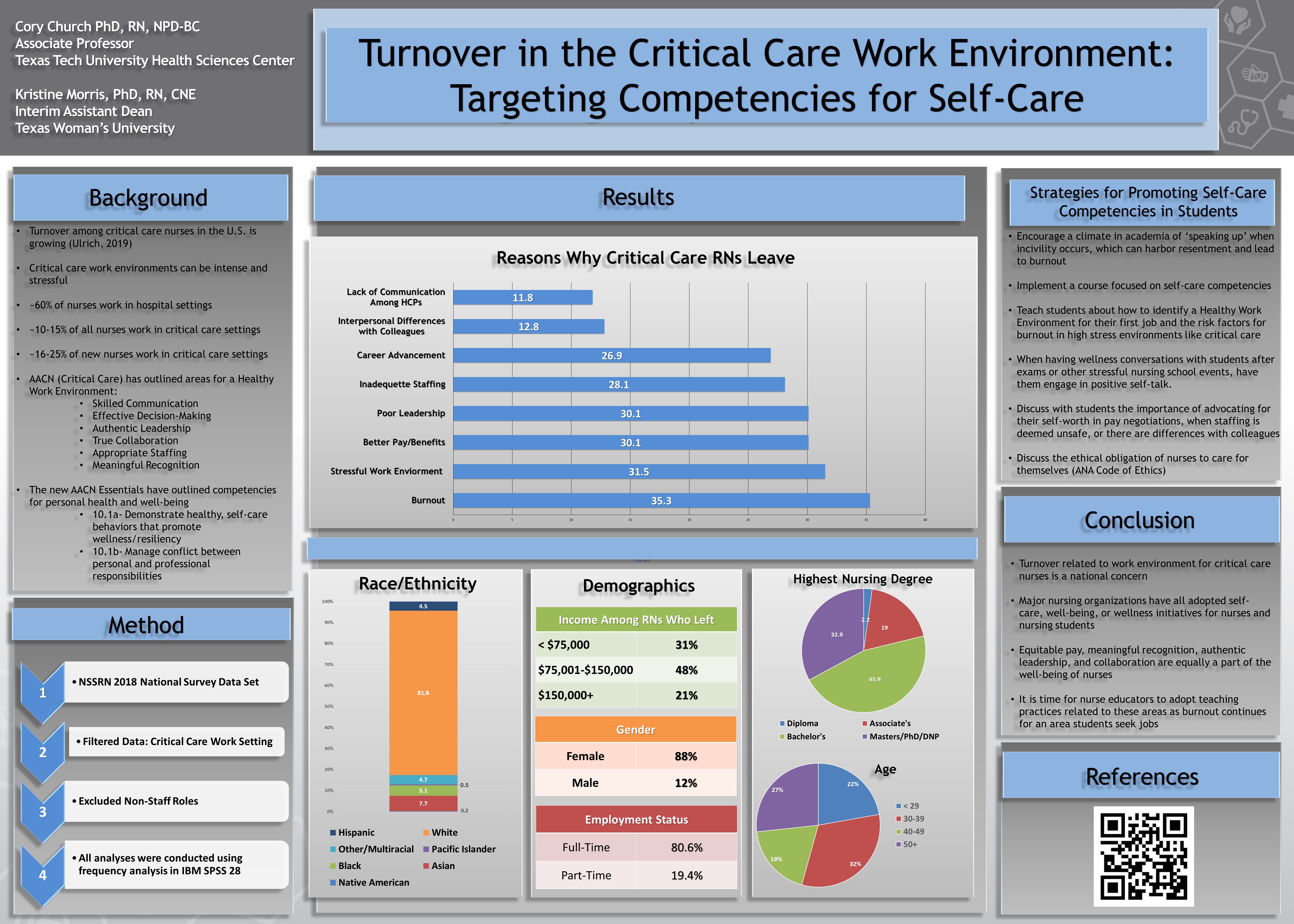 Purpose: The purpose of the study was to determine the reasons for turnover in the critical care work environment to determine the need for a focus on self-care competencies in nursing education.