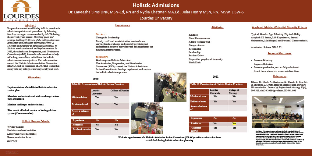 Dr. LaKeesha Sims DNP, MSN-Ed, RN is the current Project Director of the Nursing Workforce Diversity Grant at Lourdes University. Her background consists 17 years of experience in acute care and nursing education. After gaining experience as a Registered Nurse, LaKeesha returned to Lourdes and completed her Master of Science in Nursing degree to become a nurse educator in 2019 and her Doctor of Nursing degree in 2021. As the current Project Director of INSPIRE, she understands what a diverse/disadvantaged student entails and assists in developing ways to increase nursing progression and retention of nurses under-represented among registered nursing.