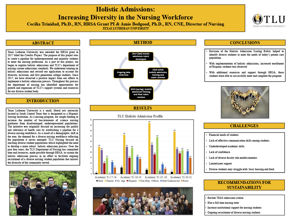 Dr. Cecilia Trinidad is an Assistant Professor of Nursing at Texas Lutheran University in Seguin, TX. She has been at TLU since 2013 and was integral in the start of the BSN program. She graduated from the University of Incarnate Word with her Bachelor of Science in Nursing and her Master of Science in Nursing with an emphasis nursing education with a minor in nursing administration. She earned a postMaster's certificate as a Gerontological Nurse Practitioner and Doctorate of Nursing Philosophy from Walden University with a concentration in nursing education. Dr. Trinidad has been a nurse for 27 years.