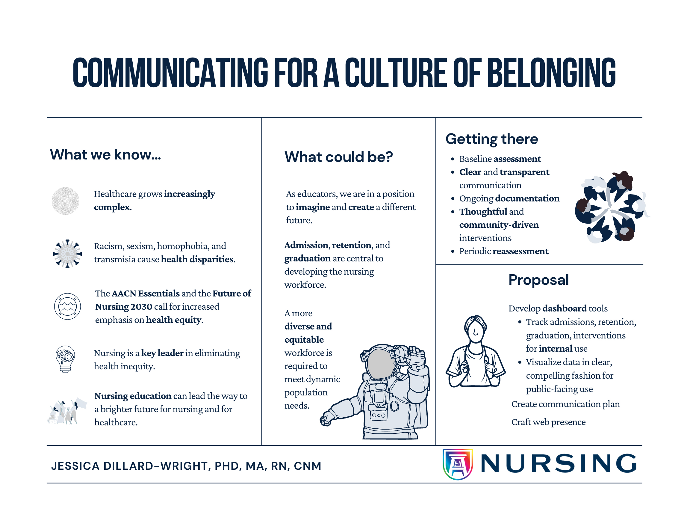 Jess Dillard-Wright, PhD, MA, RN, CNM (she/they) lives and works in Augusta, Georgia. She/they are an Assistant Professor at Augusta University where she/they also directs the College of Nursing Office for Diversity, Equity, and Inclusion. Her/their scholarship focuses on the moments when feminism, nursing, history, and activism intersect, accounting for both the normative ideas, beliefs, and values that shape nursing. Jess is increasingly interested in speculative futures and posthumanism for nursing. She/they are active with the AACN DEIG, the International Philosophy of Nursing Society, the Nursology Theory Collective, and the American History of Nursing Society Diversity and Inclusion Committee.