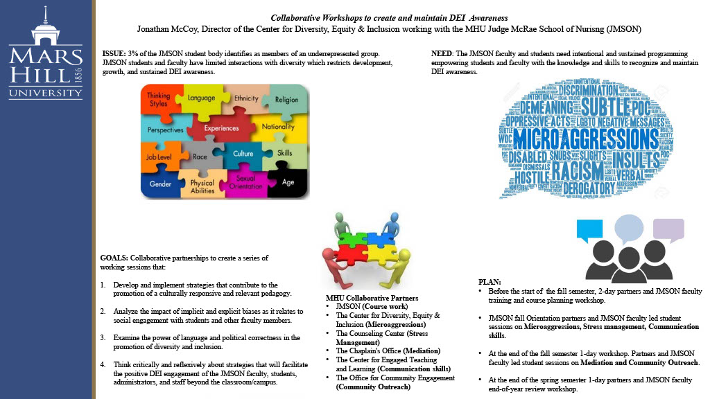 Jonathan McCoy is a History instructor and the Director of the Center for Diversity, Equity, and Inclusion (CDEI) at Mars Hill University (MHU), a small liberal arts institution in western North Carolina.